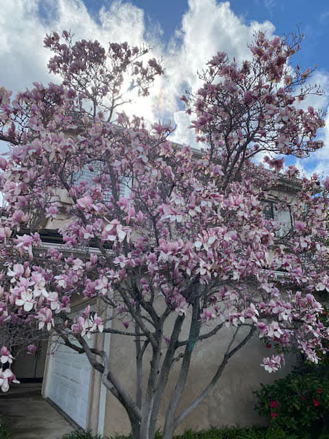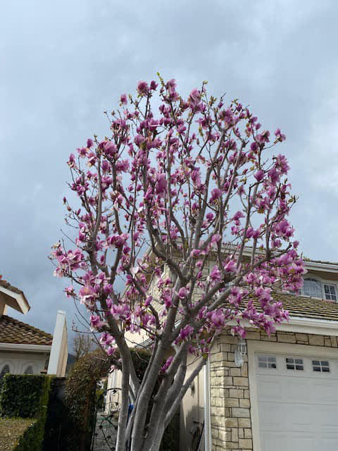 Hình ảnh cây hoa mộc lan phủ hoa màu tím hồng gây thương nhớ.