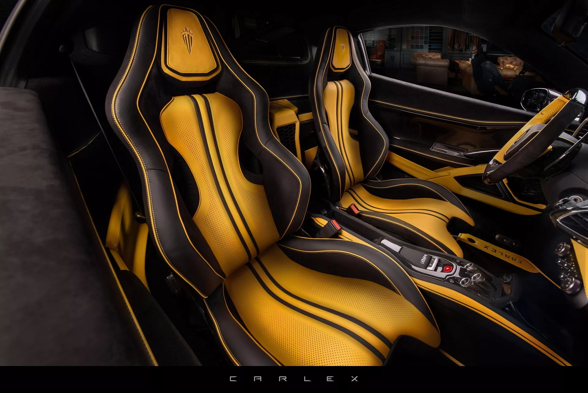 Gói độ của Carlex Design 99% hướng vào nội thất với thay đổi duy nhất bên ngoài là dàn mâm hợp kim 20 inch mới. Ngược lại, cabin xe được làm lại hoàn toàn với ghế, vô lăng, tựa tay, cửa, táp lô đều được thay mới trong tông nền chủ đạo là đen - vàng lấy cảm hứng từ hoàng hôn.