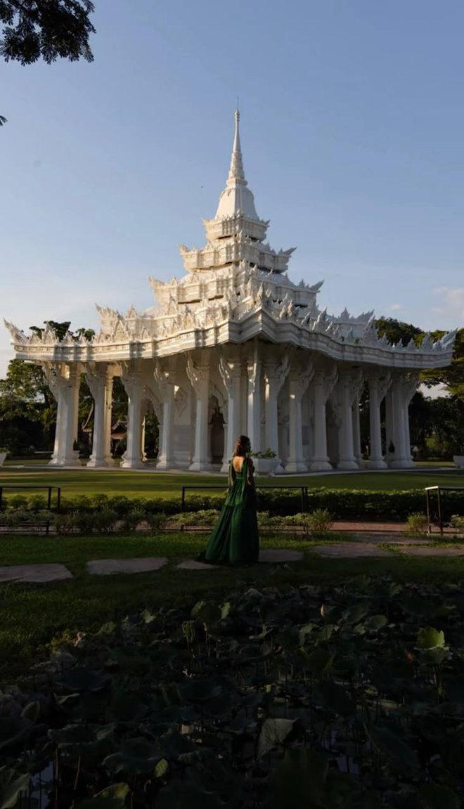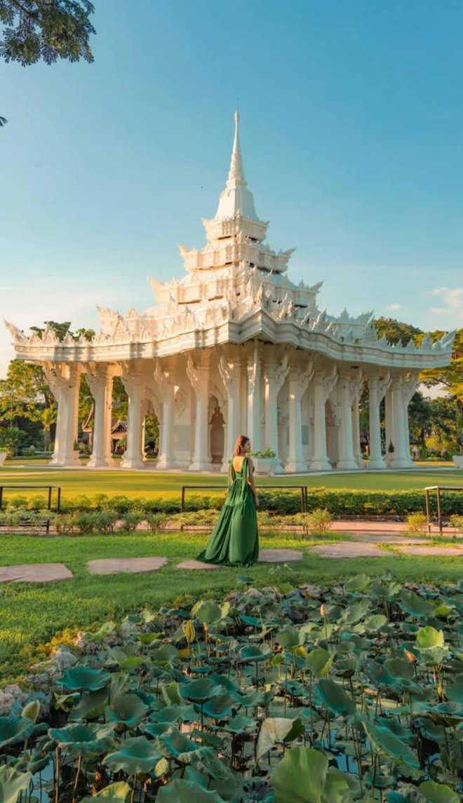 Nơi cô nàng check-in chính là thành cổ Muang Boran Bangkok - bảo tàng ngoài trời lớn nhất thế giới. So với ảnh thực tế, ảnh được chỉnh trở nen lung linh hơn. (Ảnh: @tramnble)