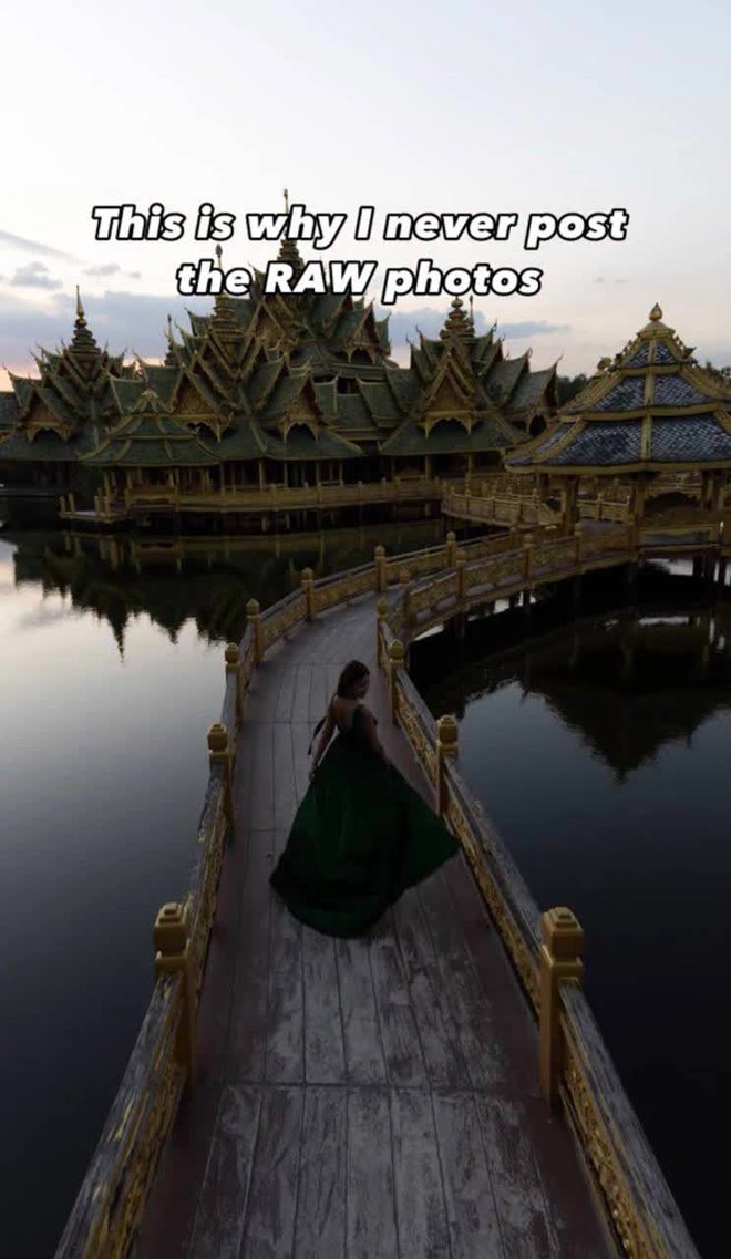 Mới đây một travel blogger đã đăng tải đoạn clip “bóc mẽ” những thước phim sống ảo và ngoài đời khiến dân tình vô cùng ngỡ ngàng. Có thể thấy, so với những bức ảnh đã qua chỉnh sửa như tăng sáng hay thêm chút màu mây cho bầu trời bớt u ám thì việc nhìn vào một ảnh gốc tối đen, không có điểm nhấn chắc hẳn không ít người sẽ phải ngán ngẩm.